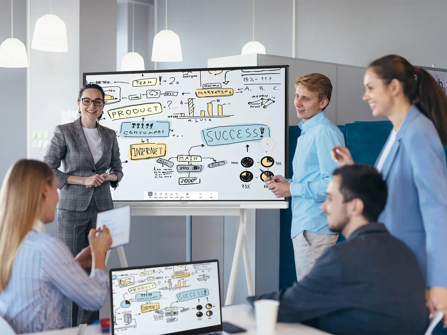 📌 Share any screen in one tap.E-Share wireless casting lets everyone throw ideas up instantly from laptops, tablets, or phones.