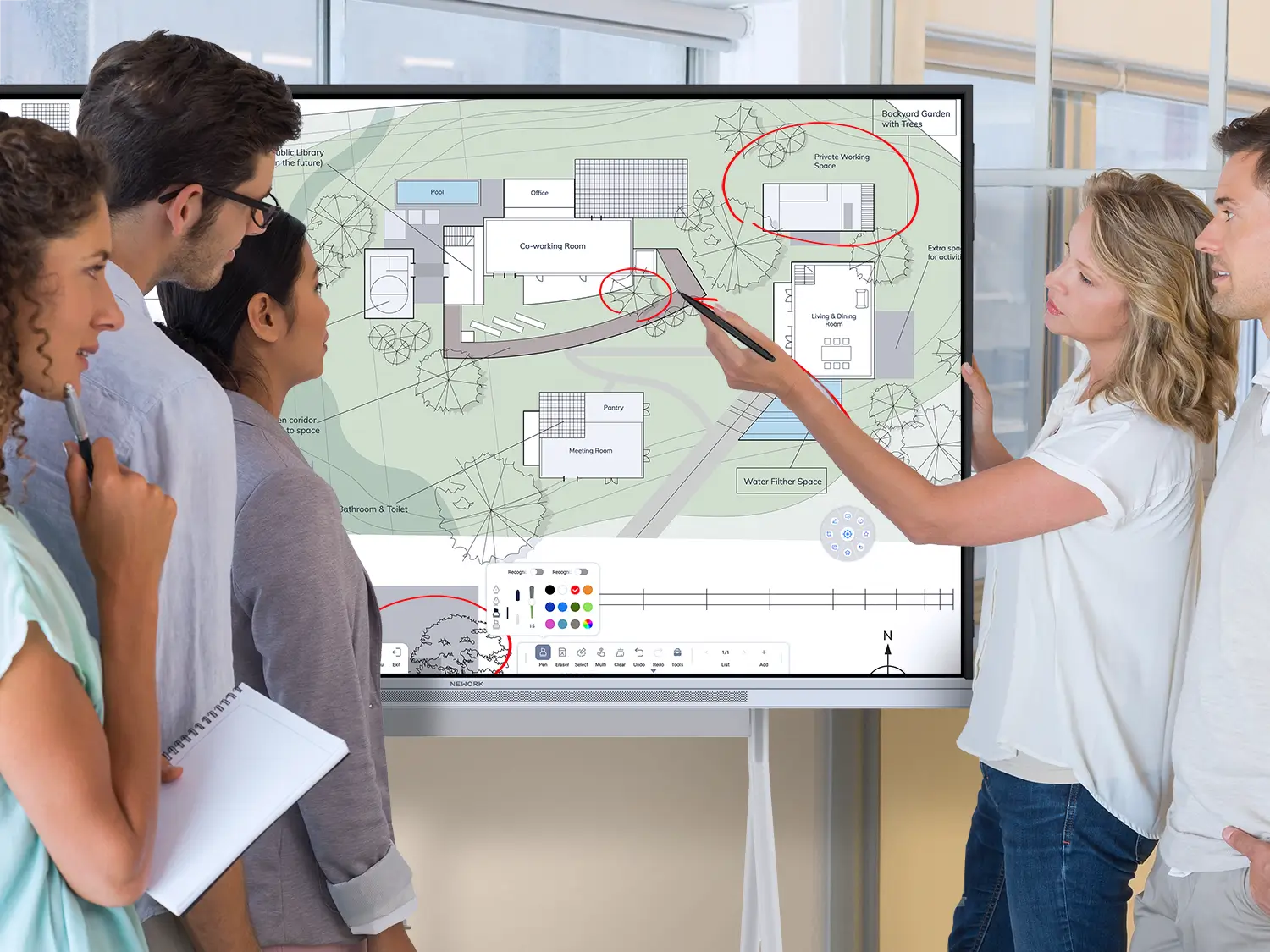 📌 Write, draw, and erase instantly.Near-zero latency touch recognizes pen, finger, and palm so brainstorming stays smooth and uninterrupted.